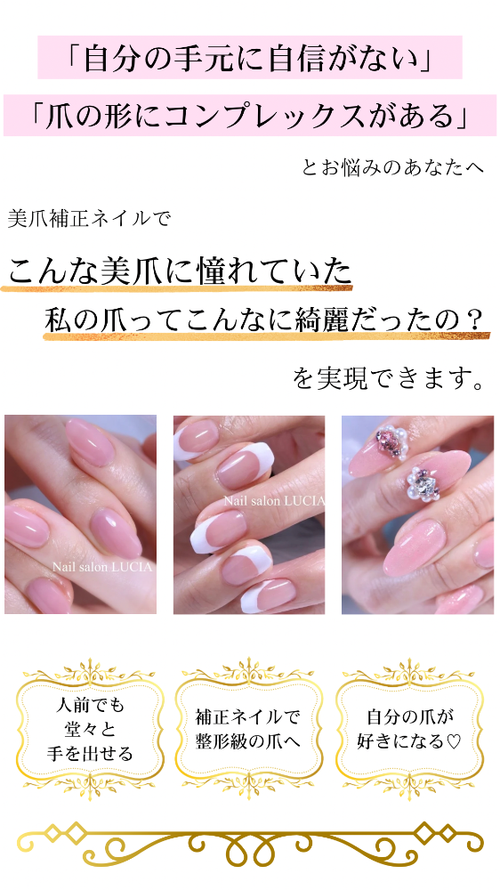 ジェルネイルを楽しみながら、縦長爪へとなるよう”補正ネイル専門“サロンのため