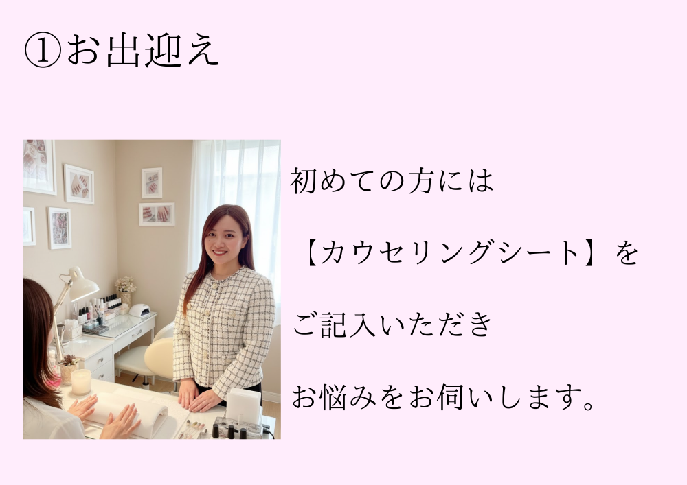 当サロンへお越しのお客様の大半は、ネイルサロンが初めての方で、ご自身の爪や手元にもコンプレックスをお持ちの方です。