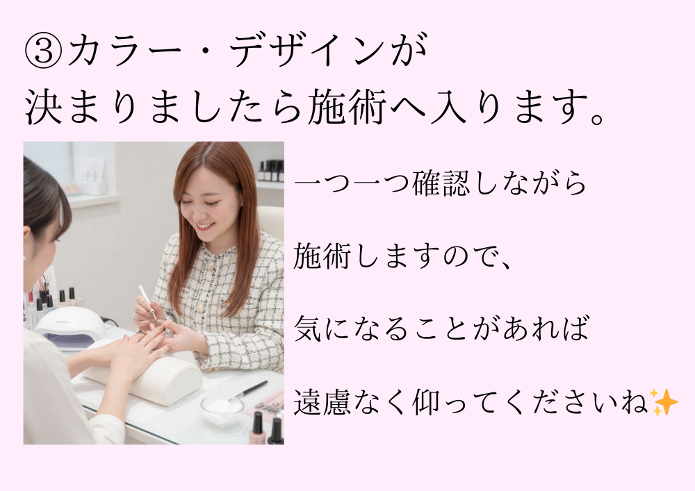 一つ一つの工程で説明しながら、確認しながら施術していきますので、ご安心くださいね☺️