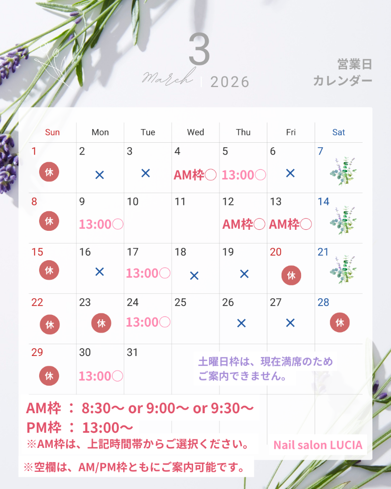 また、暖かい季節になると(特に夏)爪の伸びるスピードが通常よりも早くなりますので